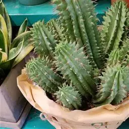 虎刺梅:别称铁海棠,是蔓生灌木植物。茎多分枝,长60-100厘米,直径5-10毫米,具纵棱,密生硬…
