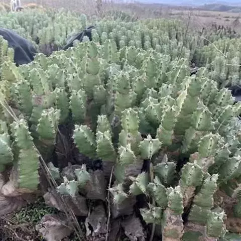 魁伟玉原产南非,是一种大戟科的多年生肉质植物,植株具粗圆筒形肉质茎,有10条以上的突出棱,…