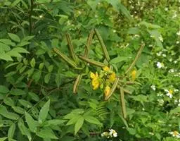 荚果扁平,长圆形或带状,无毛,长3-7厘米,宽8-14毫米,基部收缩为一细果颈,通常有1粒种子,稀2-4粒;种子肾形,极扁平,长约8毫米,宽约5毫米。花期4-5月。