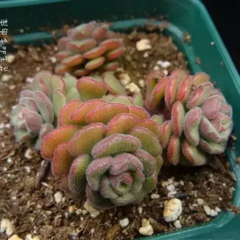 一种比较迷你的多肉植物,很适合用于其它多肉植物混搭组合,常年为绿色,日照时间增多及温差巨大的情况下会整株变为粉红色。夏季会缓慢生长,所需水分较少,极易繁殖和群生。