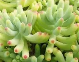玉米石是景天科、景天属植物。多年生草本多浆植物。植株低矮丛生,多分枝。叶膨大成圆筒形、卵形或近小球形,…