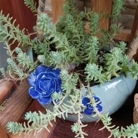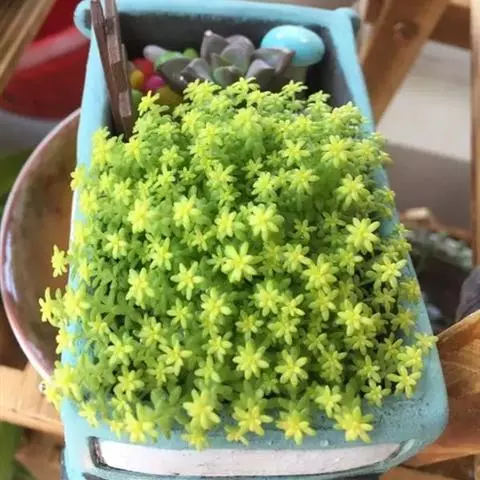 薄雪万年草别名矶小松,景天科景天属多年生草本植物,其细小的蓝绿色棒状叶片环绕生长于茎端,…