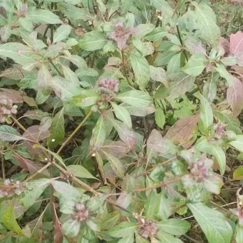 草本,高0.5-1.5米。茎坚硬,四棱形,具深槽,密被倒向短硬毛。叶几无柄,长披针形,长8-22厘米,宽(0.8)1.5-5厘米,先端渐尖或尾状渐尖,基部渐狭成楔形或骤然收缩成近圆形至极浅的心形,通常干后变黑,上面被疏短硬毛,下面网脉上被小疏柔毛,纸质,边缘为粗锯齿或浅齿状。聚伞花序具(5)7-11花,连同总梗长约2.5厘米,宽约3厘米;总梗长6-12毫米,花后下倾,毛被同于茎;苞片及小苞片极小,线形,长1-2毫米;花干后通常变黑,具梗,花梗长4-6毫米,被与总梗相似的毛被。花萼长约4.5毫米,宽约3.5毫米,外面基部被疏短柔毛,内面无毛,萼齿5,短小,后面的1齿较其余的4齿为小。花冠淡紫红色,直伸,长约3.3厘米,外面被极疏的长硬毛,内面无毛或于喉部萼上疏生短毛,冠筒基部宽约3毫米,在中部以上扩展,至喉部宽达1.1厘米,冠檐近二唇形,上唇短,长约3.5毫米,宽约4.5毫米,先端圆形,下唇长1.4厘米,宽1.9厘米,3裂,中裂片较大,宽卵圆形,长6.5毫米,宽9毫米,侧裂片较小。雄蕊4,前对较长,内藏,花丝扁平,插生于冠筒的中部,花药近球形,靠近背部囊状,密被毛束。花柱丝状,略超出上唇,先端相等的2浅裂。花盘环状,平顶。子房无毛。成熟小坚果1枚,核果状,黑色,近球形,直径5-7毫米,外果皮肉质而厚,干时角质。花期7-9月,果期9-11月。