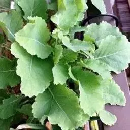 植株高大,生长20余片叶子后抽出花茎,顶端生紧密群集成花球状的群生花蕾,花蕾青绿色,故也称青花菜。叶色蓝绿,渐转为深蓝绿,蜡粉增多。叶柄狭长。叶形有阔叶和长叶两种。