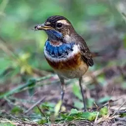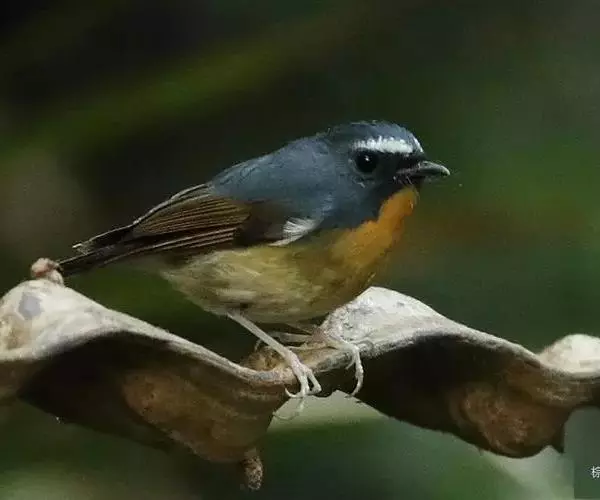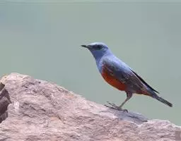 栗腹歌鸲(图2) 雄鸟:体小的深色歌鸲(15厘米),上体青石蓝色;眉纹白,喉、胸及两胁栗色;眼先及脸颊黑;腹中心及尾下覆羽白色。雌鸟:上体橄榄褐色,下体偏白,胸及两胁沾赭黄。幼鸟深褐色而具皮黄色点斑。虹膜-褐色;嘴-夏季黑色,冬季上嘴褐色,下嘴近粉;脚-粉褐。