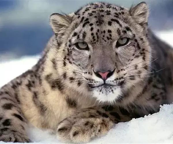雪豹,体长110~130厘米;尾长90~100厘米,体重一般50~80公斤之间。全身灰白色,布满黑斑。头部黑斑小而密,背部、体侧及四肢外缘形成不规则的黑环,越往体后黑环越大,背部及体侧黑环中有几个小黑点,四肢外缘黑环内灰白色,无黑点,在背部由肩部开始,黑斑形成三条线直至尾根,后部的黑环边宽而大,至尾端最为明显,尾尖黑色。