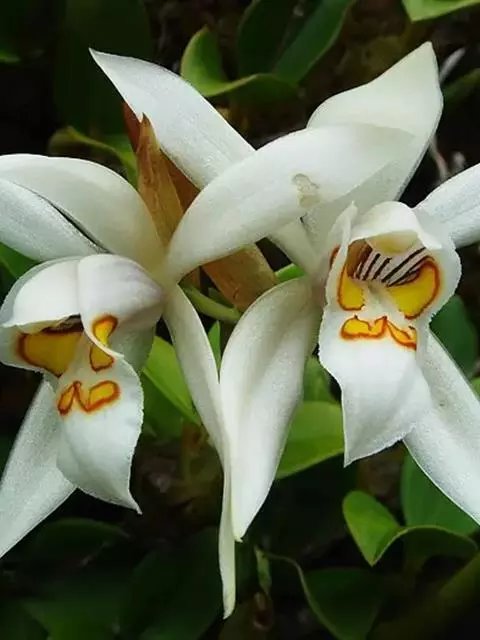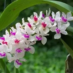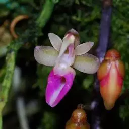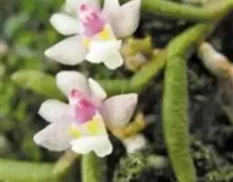指甲兰是兰科指甲兰属植物。其茎粗壮;叶带状;总状花序疏生数朵花;萼片和花瓣淡白色,…