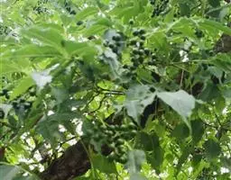 果圆球形,径约1厘米,蓝黑色,通常有5-8(-10)浅纵沟,干后较明显;种子通常5粒。花期5-6月,果期9-10月。
