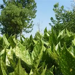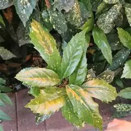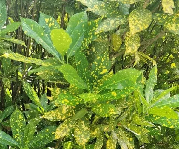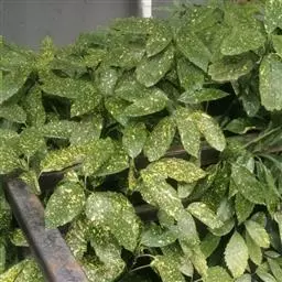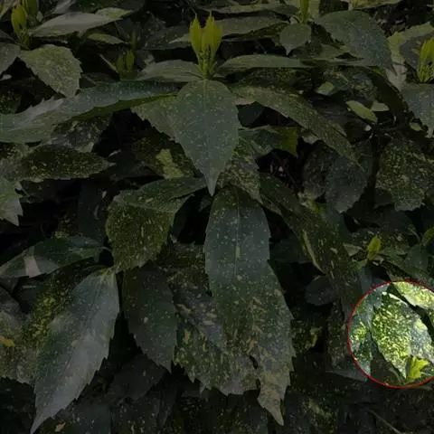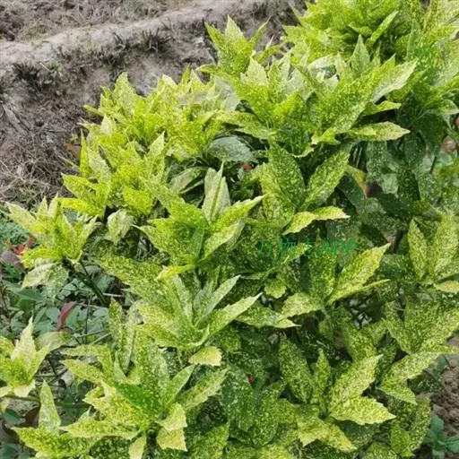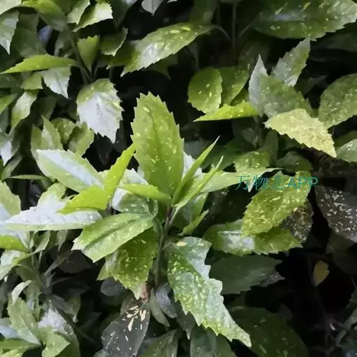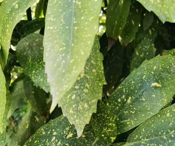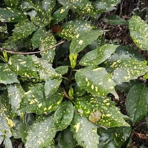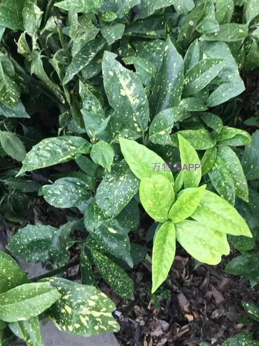 花叶青木(变种)(华北经济植物志要)洒金叶珊瑚(江苏),金沙树(日本)本变种的叶片有大小不等的黄色或淡黄色斑点,植株常高1-1.5米。易与原变种区别。