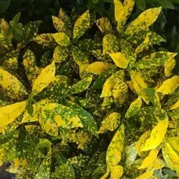 花叶青木(学名:)是山茱萸科,桃叶珊瑚属青木的变种,常绿灌木,高可达3米;小枝对生。叶革质,叶片卵状椭圆形或长圆状椭圆形,叶面光亮,具黄色斑纹,叶柄腹部具沟,无毛。圆锥花序顶生;雌花序为短圆锥花序;花瓣紫红色或暗紫色,雄花花萼杯状,雌花子房疏被柔毛,柱头偏斜;浆果长卵圆形,成熟时暗紫色或黑色,花期3-4月;果期至翌年4月。