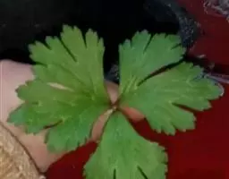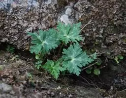 基生叶5-13,有长柄;叶片卵形,长3-4厘米,宽3.2-4.5厘米,基部心形,三全裂,中全裂片菱状宽卵形,基部宽楔形,突缩成短柄(长3-5毫米),三深裂,深裂片浅裂,末回裂片卵形,顶端急尖,侧全裂片较小,近无柄,卵形,不等三深裂,各回裂片互相多少覆压,表面变无毛,背面有稍密的长柔毛;叶柄长9-15厘米,与花葶都有开展的长柔毛(毛长2.5-4.5毫米),基部有狭鞘。