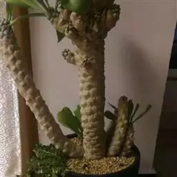 魁伟玉原产南非,是一种大戟科的多年生肉质植物,植株具粗圆筒形肉质茎,有10条以上的突出棱,…
