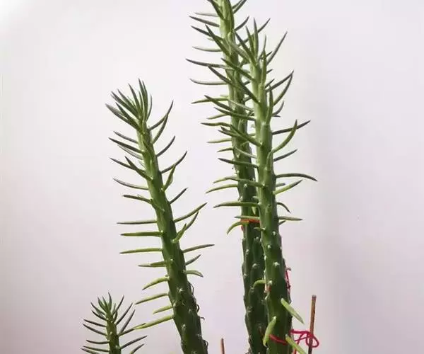 丛柱形植株长到40厘米至50厘米时或30厘米至40厘米时削去顶端,让其自然生长,形成多头体的龙骨,但选留应有序,不可紊乱。 龙骨柱生长高度达2米至3米时,形成众多枝头,易造成头重脚轻不稳固,所以应及时绑支棍加以固定。 龙骨柱需阳光充足,枝体呈蓝绿色,叶片似鱼鳞,在阳光照耀下会闪闪发光,众体林立,群峰利剑,很是壮观,是盆栽花卉的佳品。