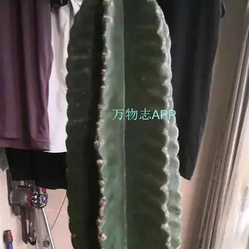 多分枝,蓝绿色,高4米至5米,棱边有小刺,极短。龙骨柱夏季开白花,4朵至9朵,丛生于上部的刺座上,昼开夜闭(盆栽一般不易开花),浆果小圆形,蓝紫色,可食。