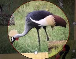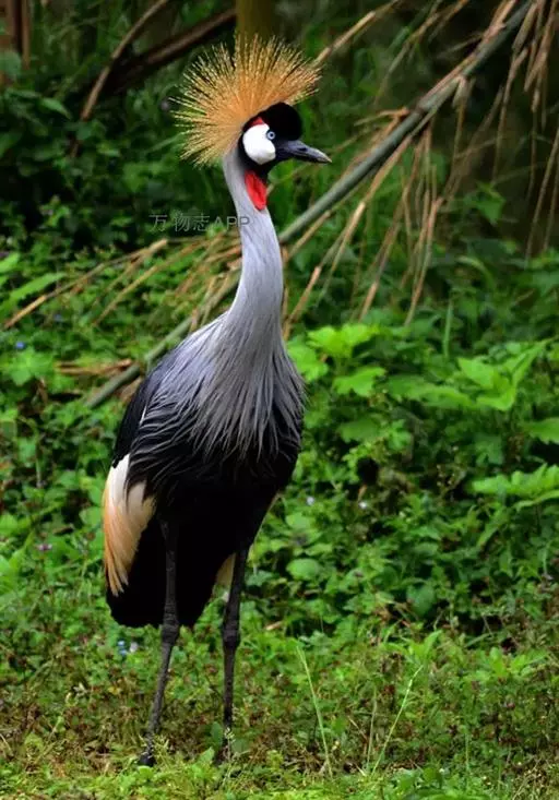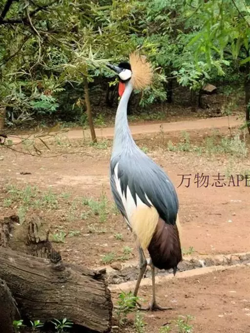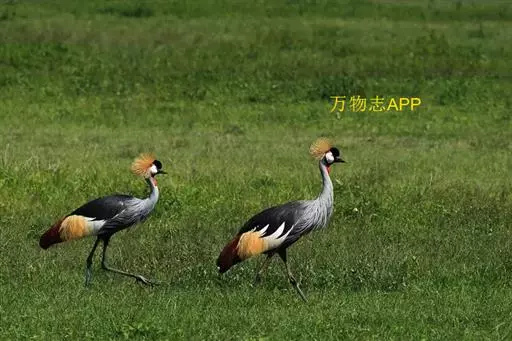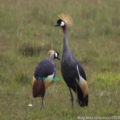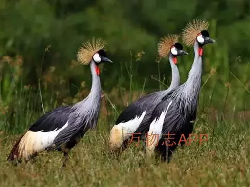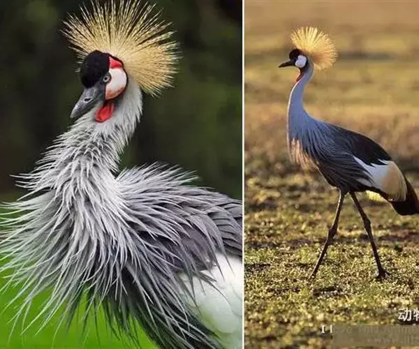 东非冕鹤也叫灰冠鹤,体长110厘米,翼展180-200厘米,体重3000-4000克。 具有瘦长挺立的双腿,伸展自如的长颈,优美动人的体态,大有超凡脱俗之气概。它的雄鸟与雌鸟的羽色非常相似,全身的羽毛都呈深浅不同的灰色,飞羽为白色,翼尖和尾羽为棕褐色,光华熠熠。但最为楚楚动人之处,还是它的头部,清癯的双颊上嵌着上面是小块红色,下面为大块白色的斑块,以及一对炯炯有神的小圆眼睛,喉下悬垂着两个红色的大肉垂。头顶前部的羽毛象覆盖着一块乌黑的绒缎,柔软光洁,后部则佩戴着一顶挺硬的丝毛织成的锦冠,金光闪耀,就象皇冠一样美丽。