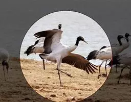 黑颈鹤:是鹤科、鹤属的大型涉禽,体长110-120厘米,体重4-6千克。颈、脚甚长,通体羽毛灰白色,…