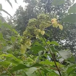 香荚蒾 播种:香荚蒾种子千粒重30-40克/1000粒。9月中旬采收果实后,水洗脱粒,做到随采随播,每亩播种量一般为25-30千克。播种时采用条播,播种沟深3-5厘米,播幅15厘米,覆土厚度2厘米,播后覆盖稻草。第二年出苗整齐后,喷洒75%多菌灵1000倍液和20%硫酸亚铁溶液2-3次,做好杀菌和预防猝倒病发生。日常做好浇水与根外追肥,当年生平均高生长量18.6厘米,平均地径0.43厘米,第2年可移植培育绿化大苗,第3年可开花结实。