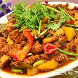 新疆大盘鸡又名为沙湾大盘鸡,是新疆名菜,起源于20世纪80年代,主要用料为鸡块和土豆块、四川粉皮,…