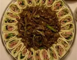 京酱肉丝,是一道知名度很高的菜肴,它是北京菜中的经典代表菜之一。制作时选用猪瘦肉为主料,辅以甜面酱…