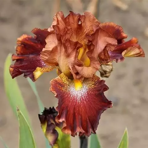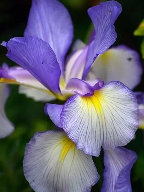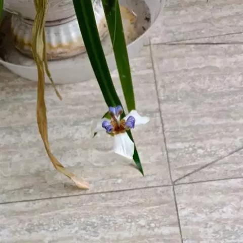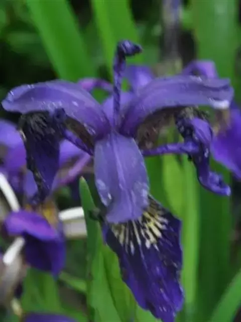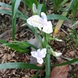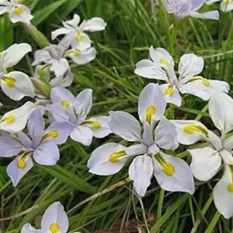 双色野鸢尾为多年生草本植物,叶子呈剑状淡绿色。…