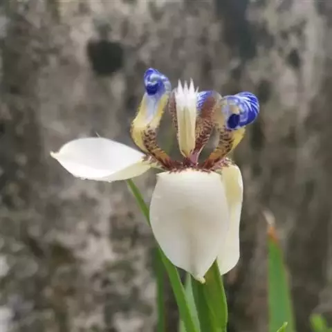 大扁竹兰扇形鸢尾,多年生草本,根茎横生,粗壮,黄白色,节明显;叶黄绿色,集生茎顶,叶片宽剑形,花蓝…