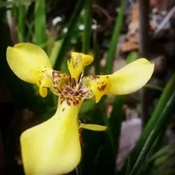 虎皮花 Ker-Gawl.)球根花卉,高40~60厘米。球茎圆锥形。 叶片剑形。花梗自叶丛中抽出,…