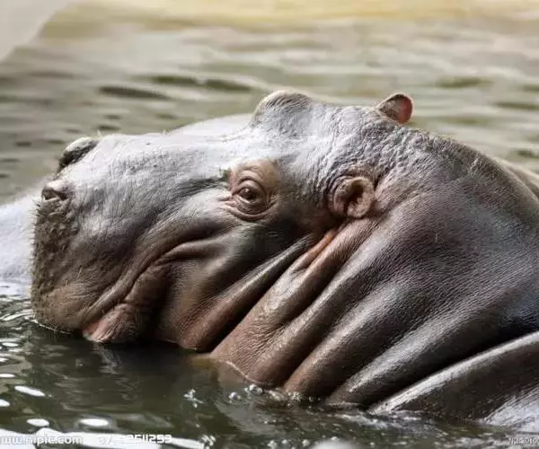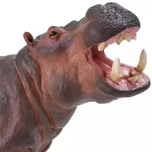 河马是陆地上仅次于象的第二大哺乳动物,体躯庞大而拙笨,体长为350-450厘米,尾长约56厘米,体重3000-3500千克,但比较矮,四肢特别短,肩高只有140-165厘米,还不及象的一半高。有一个粗硕的头和一张特别大的嘴,比陆地上任何一种动物的嘴都大,并且足可以张开呈90度角。嘴里的牙也很大,门齿和犬齿均呈獠牙状,是进攻的主要武器,下门齿不是向上生长,而是像铲子一样向前面平行伸出,长度可达60-70厘米,重量为2-3千克,犬齿的长度也达75厘米左右。眼睛、鼻孔、耳壳等都生在面部的上端,几乎在同一个平面上。皮肤很厚,背部和两侧的厚度可达4-5厘米,呈黑褐色兼赤紫色,光滑无毛,仅在嘴端、耳内侧和尾巴上有一些毛。前后肢上各有大小几乎相等的4趾,趾尖有蹄,其形状如同扁爪,趾间略微有蹼。