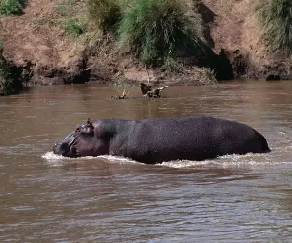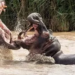 河马虽然总是呆在水里,只能潜水。在受惊时,一般避入水中。每天大部分时间在水中,潜伏水下时一般每3、5分钟把头露出水面呼吸一次,但可潜伏约半小时不出水面来换气。河马平时较安静,一旦发起脾气来,常常打架,它们各自用自己锋利的牙齿去刺伤对方厚厚的皮肤。有时在河里发起怒来,它敢顶翻小船,把船咬成两段。