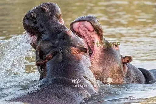 河马(学名:Hippopotamus amphibius)是淡水物种中的最大型杂食性哺乳类动物,体型巨大,体长4米,肩高1.5米,体重约3吨,躯体粗圆,四肢短,脚有4趾,头硕大,眼、耳较小,嘴特别大,尾较小,下犬齿巨大,长50-60厘米,重2.5千克,皮较厚,约40-50毫米,除吻部、尾、耳有稀疏的毛外,全身皮肤裸露,呈紫褐色.胃三室,不反刍。
