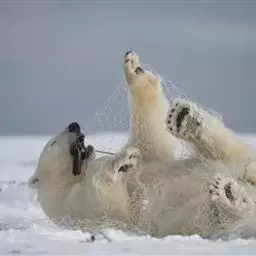 北极熊的形象会出现在无数卡通片中,它们温顺、憨厚、可爱、忠诚,是人类的好伙伴。它们睡在冰川上的姿势就像一个三岁孩童抱着布娃娃入眠一样可爱。但是它们有时拍打头部表示的则是恐惧。