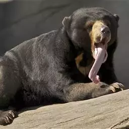 马来熊,是食肉目熊科马来熊属哺乳动物。体胖颈短,眼睛和耳朵小;头部短圆;全身乌黑光滑;鼻唇周为棕黄色,…