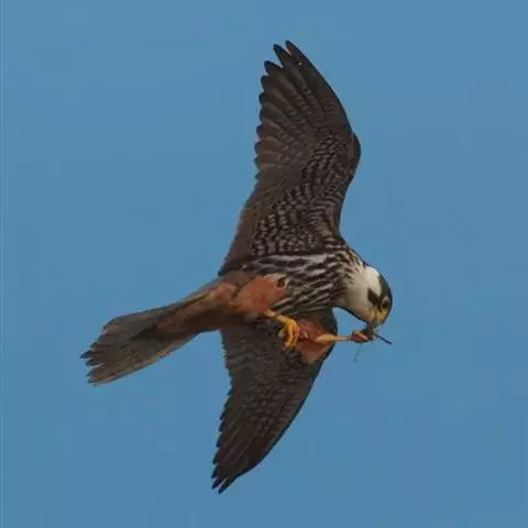 燕隼:是隼科、隼属的鸟类。体长约36厘米,体重140-340克。体形比猎隼、游隼等都小,为小型猛禽,…