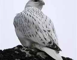 猎隼体重510-1200克,体长278-779毫米。猎隼是体大且胸部厚实的浅色隼。颈背偏白,头顶浅褐。 猎隼 头部对比色少,眼下方具不明显黑色线条,眉纹白。上体多褐色而略具横斑,与翼尖的深褐色成对比。尾具狭窄的白色羽端。下体偏白,狭窄翼尖深色,翼下大覆羽具黑色细纹。翼比游隼形钝而色浅。幼鸟上体褐色深沉,下体满布黑色纵纹。叫声似游隼但较沙哑。 [1-2]