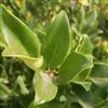 金叶女贞是美国加州的金边女贞与欧洲女贞树种杂交而成。落叶灌木,株高2-3米。其嫩枝带有短毛。叶革薄质,单叶对生,椭圆形或卵状椭圆形,先端尖,基部楔形,全缘。新叶金黄色,因此得名为金边女贞,老叶黄绿色至绿色。总状花序,花为两性,呈筒状白色小花;核果椭圆形,内含一粒种子,颜色为黑紫色。花期5-6月,果期10月。 [2-3]