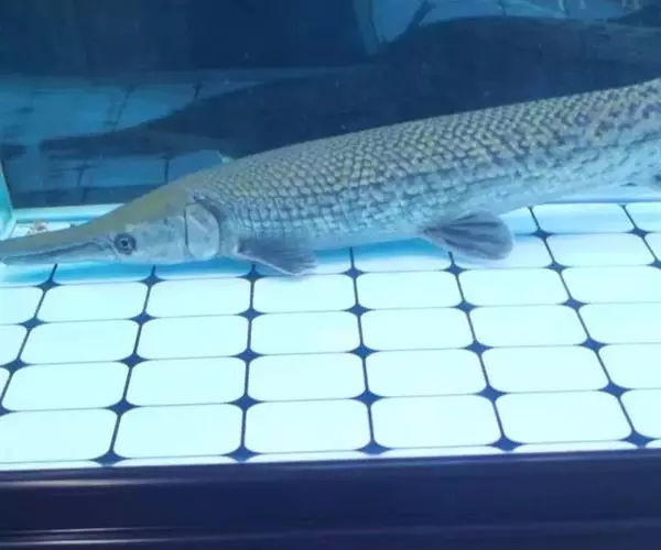 鳄雀鳝(学名:Atractosteus spatula):是北美7种雀鳝鱼中最大的一种,体长范围5至8英尺(1米52-2米44)。雌性比雄性略大,是现存7种雀鳝中体型最大的一种。鱼身呈长筒形,吻部前突,跟鳄鱼一样的短吻和上下颚密布两排匕首般锋利的牙齿,因此得名。身体覆盖着一层菱形釉层的硬磷,像是穿着钢盔铁甲。背部呈褐色或橄榄色,腹部则较为浅色。鳞片是菱形硬鳞,美洲印第安人有时会拿来作为宝石。雌鱼比雄鱼略大,是现存雀鳝目中体型最大的一种。