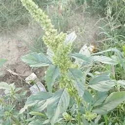 反枝苋是苋科苋属的一年生草本植物。株高达1米;茎密被柔毛;叶菱状卵形或椭圆状卵形,先端锐尖或尖凹,…