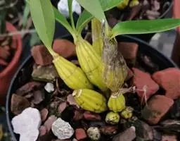 通常选用四壁多孔的塑料或陶瓷花盆,用碳根、泥炭藓、树皮块、木炭块等作盆栽材料。根据兰苗的大小,选择不同规格的花盆,但不宜用大盆栽小苗口上述栽好材料在使用前必需在清水中浸泡1天以上备用。盆底要多垫大瓦片或碎砖块,深度至盆底约1/3处,然后将兰苗放于盆中央,并在一旁插一细竹竿以固定兰苗,再填入其他栽培材料,注意根与根之间用材料隔开。