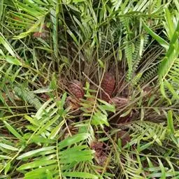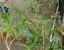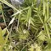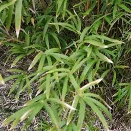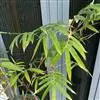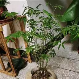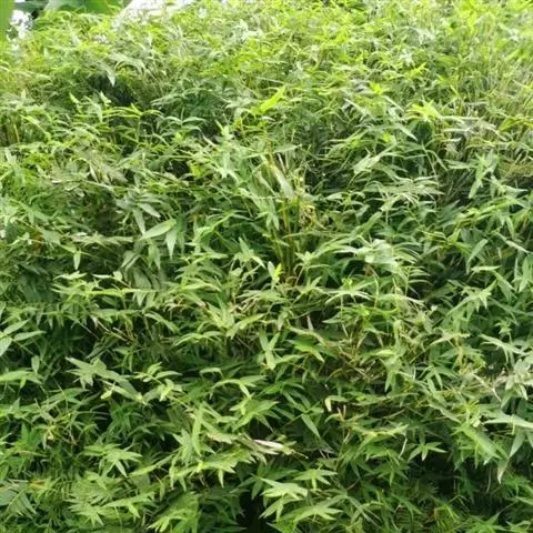凤尾竹 Raeusch. ex Schult. ’Fernleaf’ R. A. Young)是禾本科,簕竹属孝顺竹的变种。植株较高大,杆高可达6米,竿中空,小枝稍下弯,下部挺直,绿色;竿壁稍薄;节处稍隆起,无毛;叶鞘无毛,纵肋稍隆起,背部具脊;叶耳肾形,边缘具波曲状细长繸毛;叶舌圆拱形,叶片线形,上表面无毛,下表面粉绿而密被短柔毛,小穗含小花,中间小花为两性;外稃两侧稍不对称,长圆状披针形,先端急尖;内稃线形,脊上被短纤毛,花药紫色,子房卵球形,羽毛状。成熟颖果未见。原产中国,华东、华南、西南以至台湾、香港均有栽培。凤尾竹喜温暖、湿润和阳光充足的环境,耐寒。宜土层深厚、肥沃、疏松的微酸性壤土。该种观赏价值较高,宜作庭院丛栽,也可作盆景植物。全草或根入药,味淡、微苦,性寒,有清热利湿、凉血止血、消肿解毒功效,可治痢疾、泄泻等多种病症。凤尾