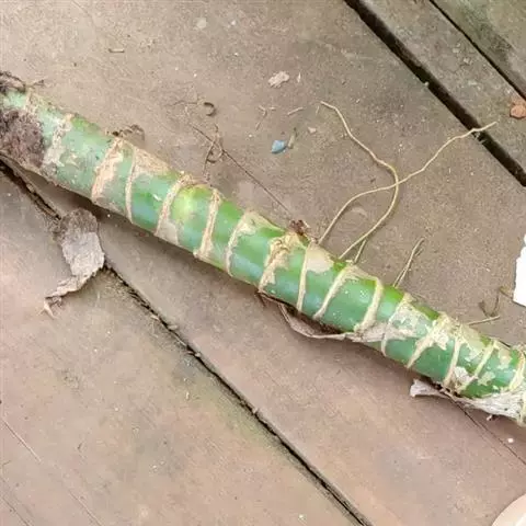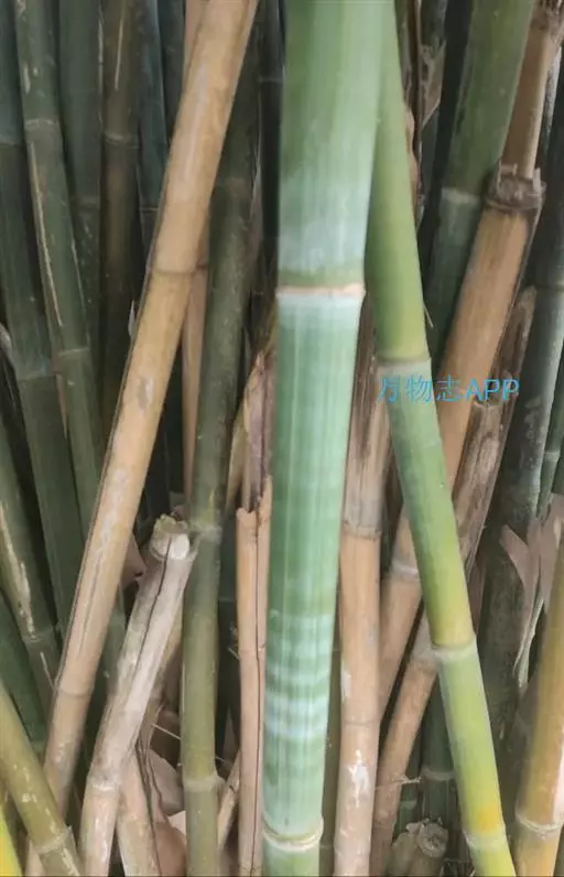 乔木状竹类,地下茎合轴型。 竿直立,顶端微弯曲,高(3)5-10(18)米,直径3-5(7)厘米;节间幼时被白色蜡粉,无毛,一般长30-45厘米,惟最长者可达1米或更长,竿壁厚3-5毫米;竿环平坦;箨环稍隆起,最初在节下方密生一圈向下的棕色刺毛环,以后则渐变无毛。