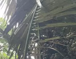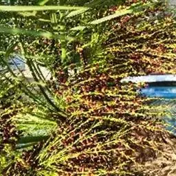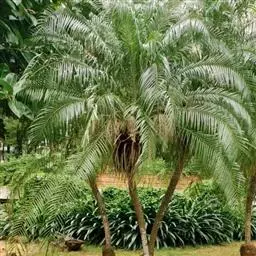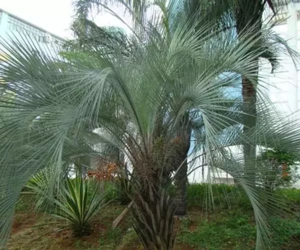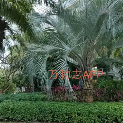布迪椰子因其银灰色叶片,紫红色花序梗及花瓣,具有观赏价值, 而且它的果肉糖分高,可供食用、制作果冻。