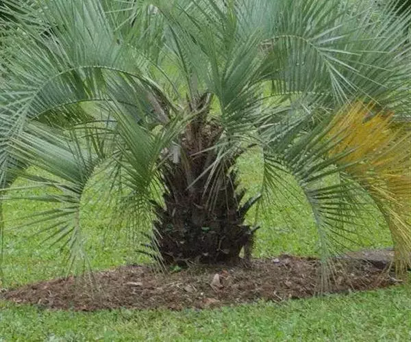 布迪椰子(学名:Butia capitata (Mart.) Becc.)是棕榈科,布迪椰属常绿观赏树种,单干型,高可达8米,老叶基残存包裹于树干,粗壮、坚硬。羽状叶,弯曲如弓形,有羽片对,厚革质,叶端尖锐,小叶片长灰绿色,叶柄具刺;雌雄同株;花序腋生,花序梗及花瓣均为紫红色,果卵球形,成熟时为橙红色;种子圆形或近圆形,核果内有种子。
