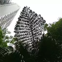 羽状叶长2.6米,弯曲如弓形,有羽片25-50对,厚革质,叶端尖锐,羽片沿叶轴两侧以对生或互生的方式呈2列排列,小叶片长0.4-0.7米,灰绿色,叶柄具刺。