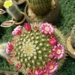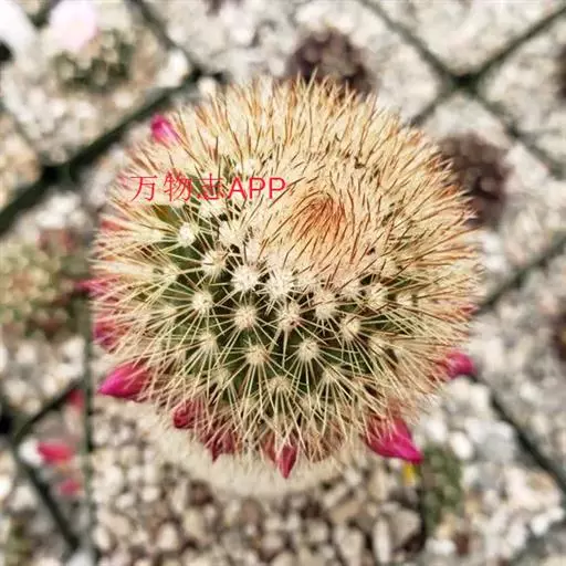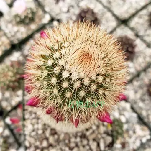 仙人掌科乳突球属原产墨西哥,通常单生,茎圆桶形,径粗9-10cm,高25-30cm,深绿色。棱13-21,放射刺20-30,中刺7-15,长2cm,红褐色。花色紫红。喜温暖干燥和阳光充足环境。较耐寒,耐干旱和半荫,不耐水湿。土壤以疏松、肥沃和排水良好的沙质壤土。生长适温为18-24°C,冬季温度不低于5°C。