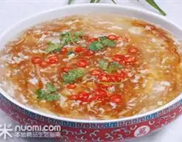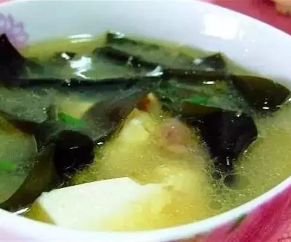 豆腐海带汤是一道色香味俱全的传统名肴,属于北京菜。将豆腐切丁,菠菜切段,海带切丝;锅内放入开水,加豆腐丁、海带丝、葱花;水沸放菠菜;煮片刻加盐、味精、胡椒粉、香油即盛入碗内。