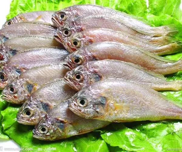 干烧小黄鱼 是由黄鱼等制作的食物,配料是葱、姜、蒜。