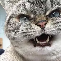 美国刚毛猫 吻部。稍有髭毛界限。适度短的鼻子有柔和凹曲线。下巴方正而发达。