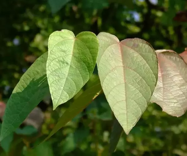灌木,高1-4米,小枝幼时密被星状茸毛。叶心形或卵状心形,有时为3-5浅裂,长10-22厘米,宽9-18厘米,顶端急尖或渐尖,基部心形或斜心形,上面无毛或被稀疏的星状柔毛,下面密被短茸毛,基生脉3-7条,叶脉在两面均凸出;叶柄长1-10厘米;托叶条形,长5-10毫米,脱落。聚伞花序有花1-5朵;花红紫色,直径约5厘米;萼片5枚,近基部连合,披针形,长15-18毫米,两面均密被短柔毛,花瓣5片,红紫色,匙形,长2.5厘米,顶端急尖或钝,基部凹陷且有毛,与退化雄蕊的基部连合;发育的雄蕊15枚,每3枚集合成一群,在退化雄蕊的基部连合并与退化雄蕊互生,退化雄蕊5枚,近匙形,两面均被毛;子房矩圆形,长约1.5毫米,略被毛,5室,有5条沟纹,长约1.5毫米,花柱三角状舌形,长约为子房的1/2。蒴果膜质,倒圆锥形,直径约3-6厘米,被星状毛,具5纵翅,边缘有长绒毛,顶端截形;种子多数,矩圆形,黑色,长约2毫米。花期春夏季。