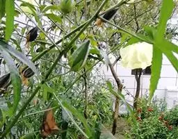 咖啡黄葵 Moench)亦称黄秋葵,是锦葵科一年生草本植物。茎圆柱形,疏生散刺。叶掌状,裂片阔至狭,…