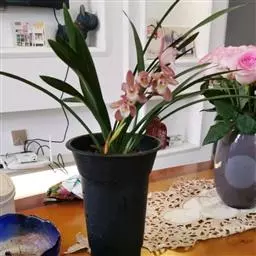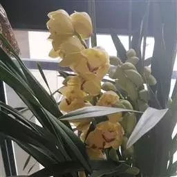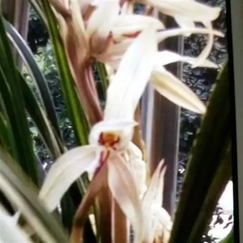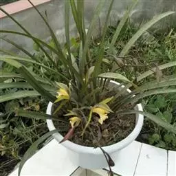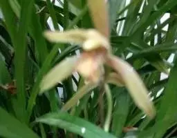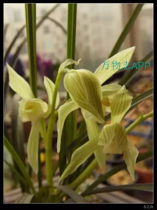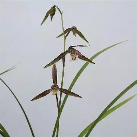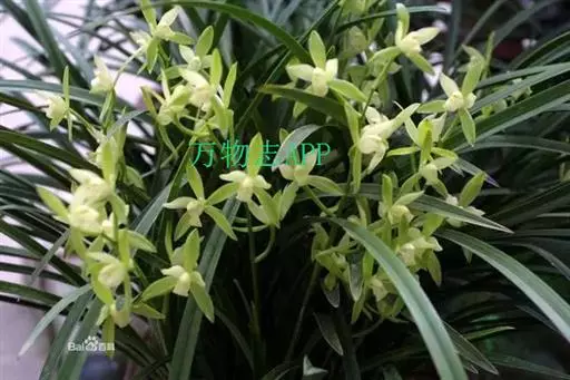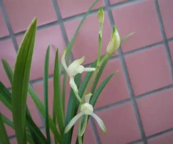 建兰素花,绿白色(接近纯白),清香,一枝开花5至12朵。叶色钢青,细而挺拔,有铮铮铁骨之相,所以叫铁骨素。在日本称其为天香,又得名天香素。花期7至11月份。