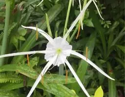 水鬼蕉叶姿健美,花期6-7月,花白色,花朵一般比较大,花瓣厚而覆盖着蜡质,一般为黄绿色到黄色,并分布着一些褐色或紫褐色的斑点。花瓣一般是细长的,且分的很开,酷似蜘蛛的长腿,而花朵中间的部分则可被看作是蜘蛛的身体。在顶端多会有向下的弯曲。适合盆栽观赏。温暖地区,可用于庭院布置或花境、花坛用材。